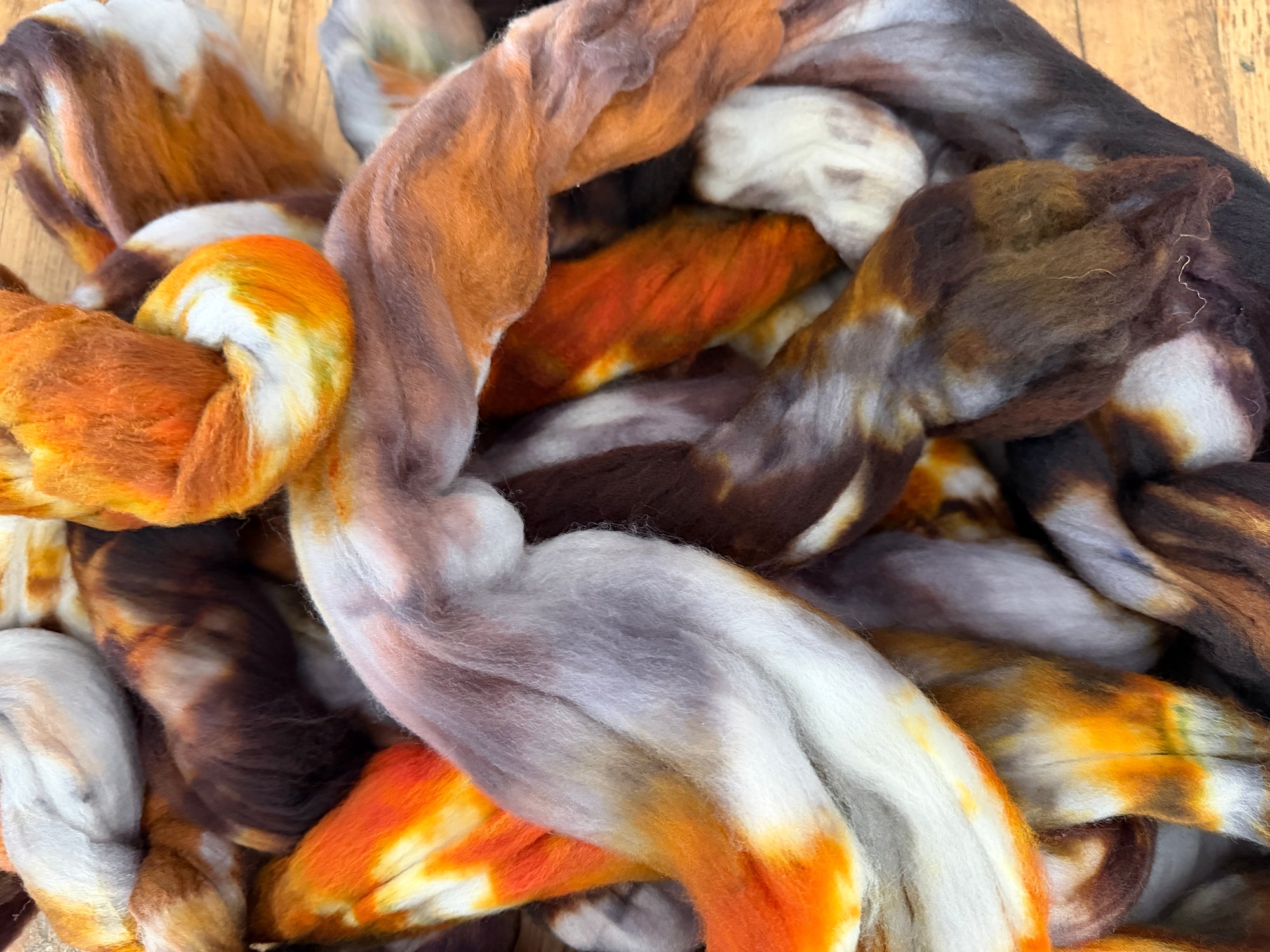 This fiber is hand dyed with professional dyes in a smoke-free environment. This wool is superwash, however I recommend washing your finished yarn with wool wash and cold water. Minimal color bleeding might occur during the first soak.