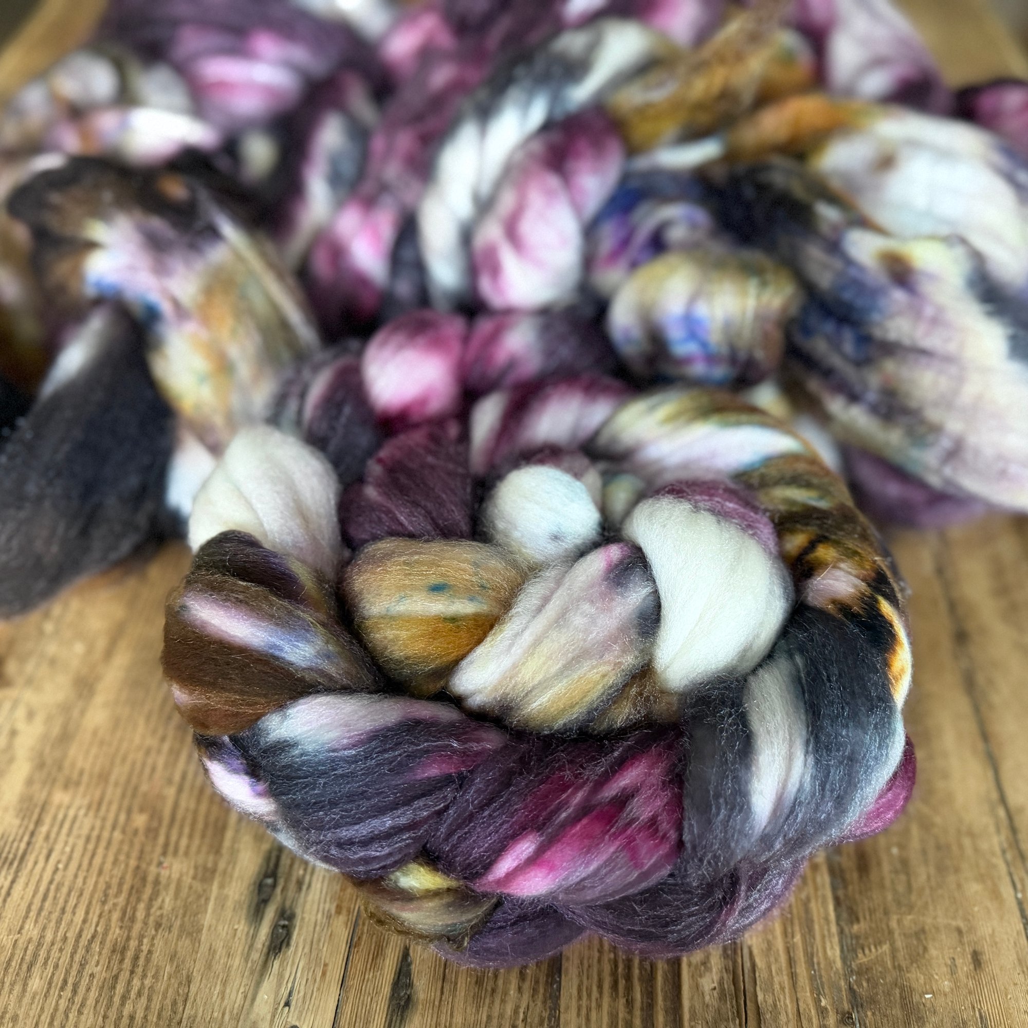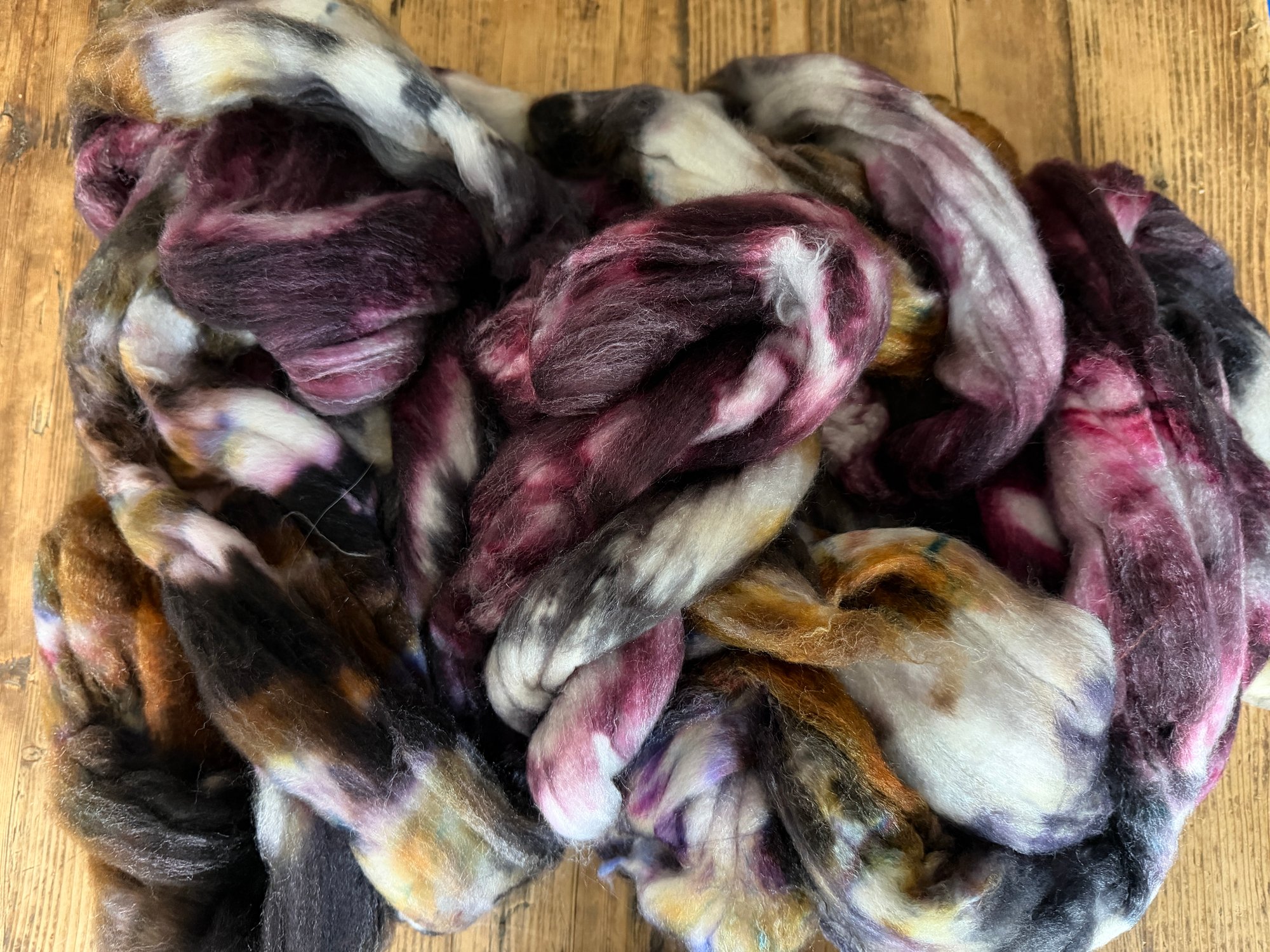 This fiber is hand dyed with professional dyes in a smoke-free environment. This wool is superwash, however I recommend washing your finished yarn with wool wash and cold water. Minimal color bleeding might occur during the first soak.